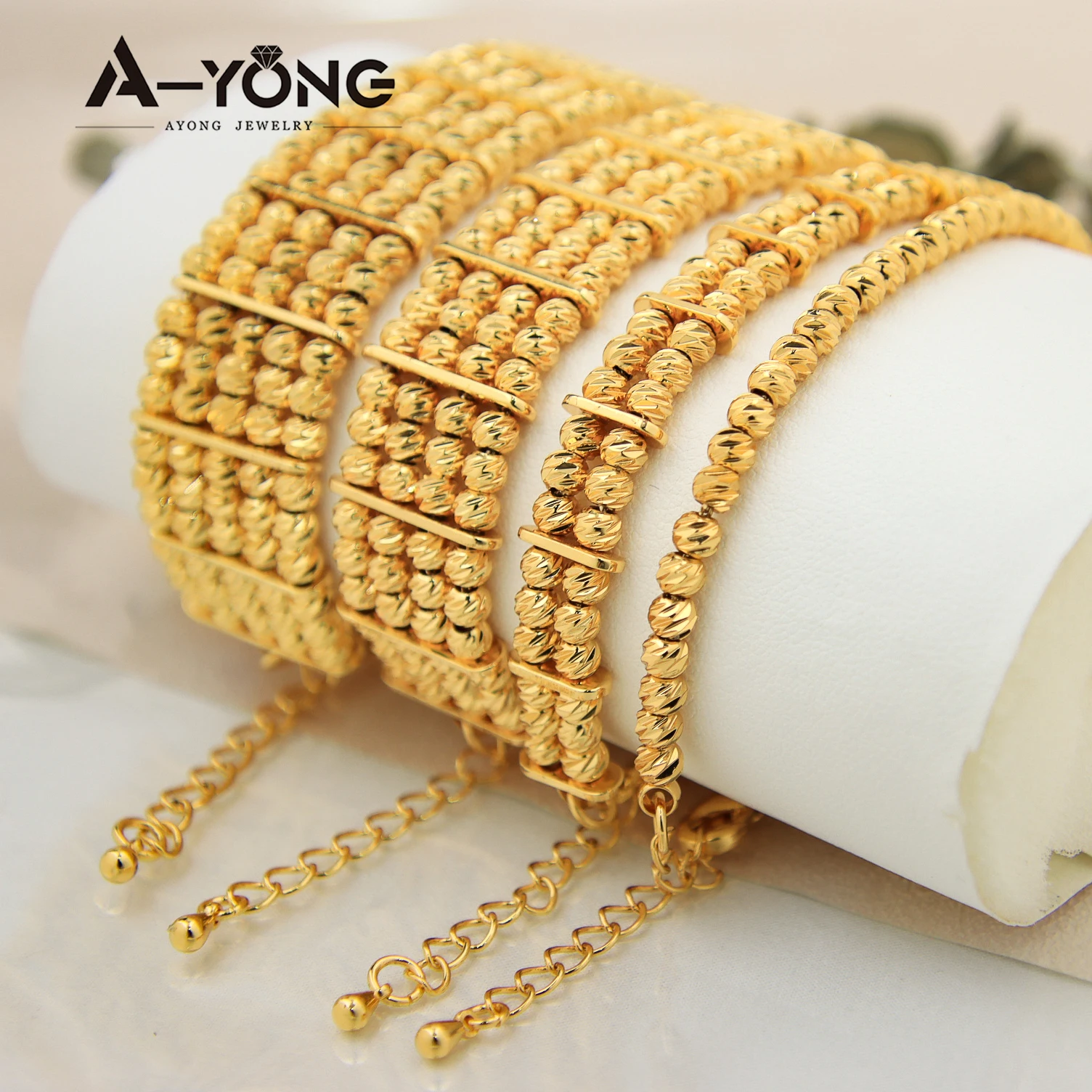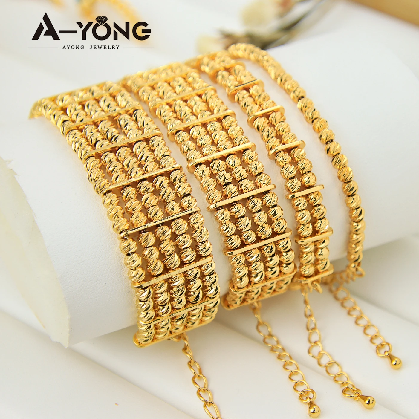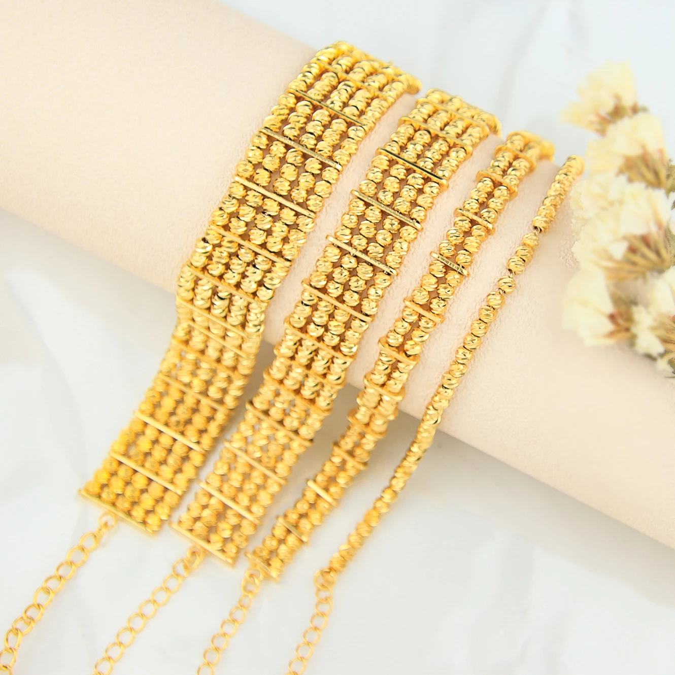 أساور متعددة الطبقات من الخرز الذهبي المطلي بالذهب عيار 21 ، أساور أنيقة ، مجوهرات فاخرة لحفلات الزفاف للنساء