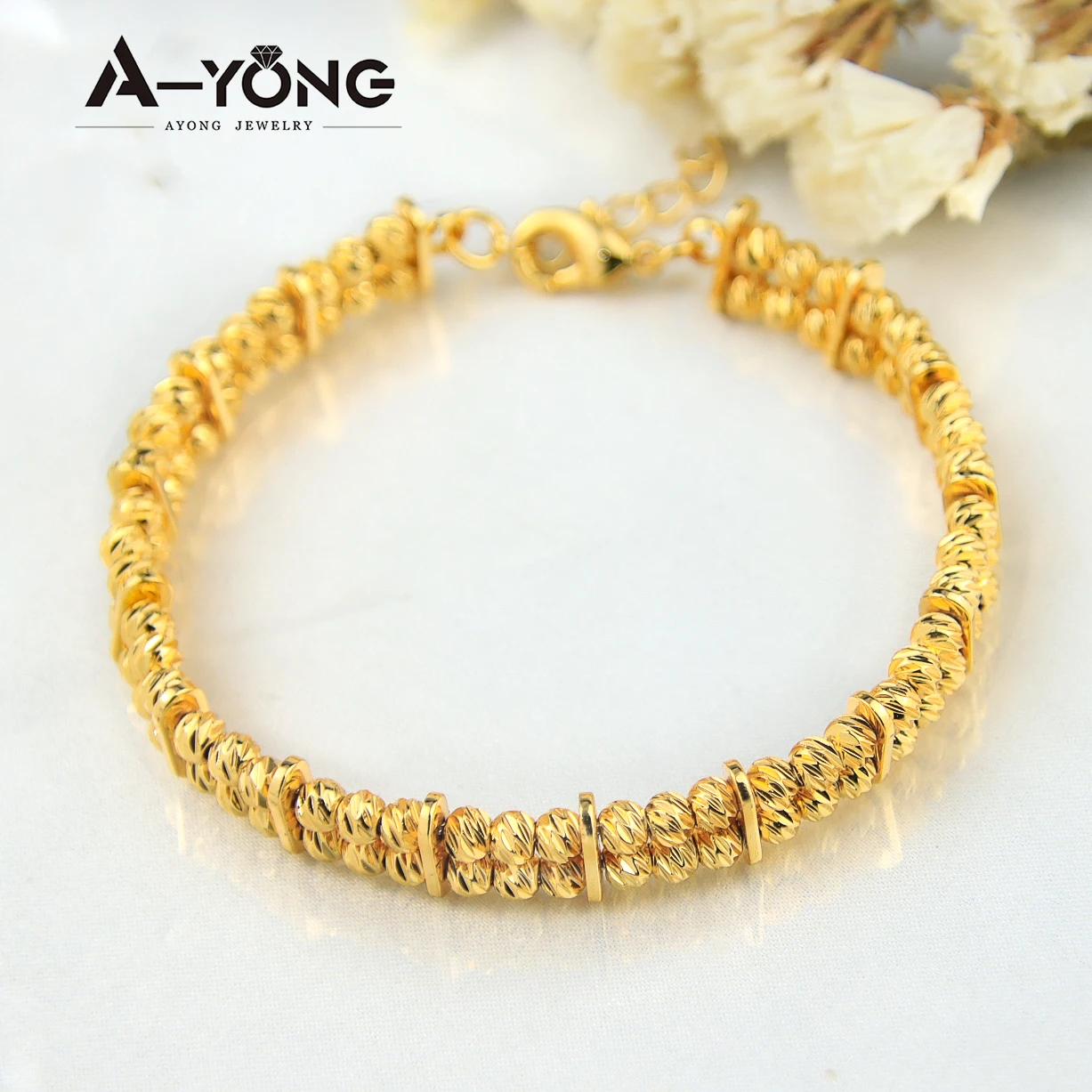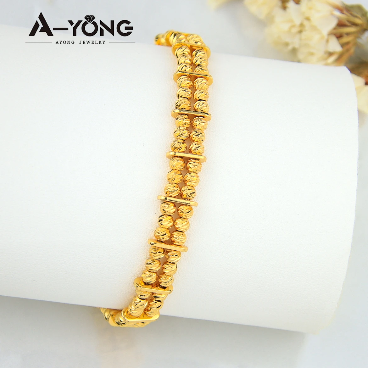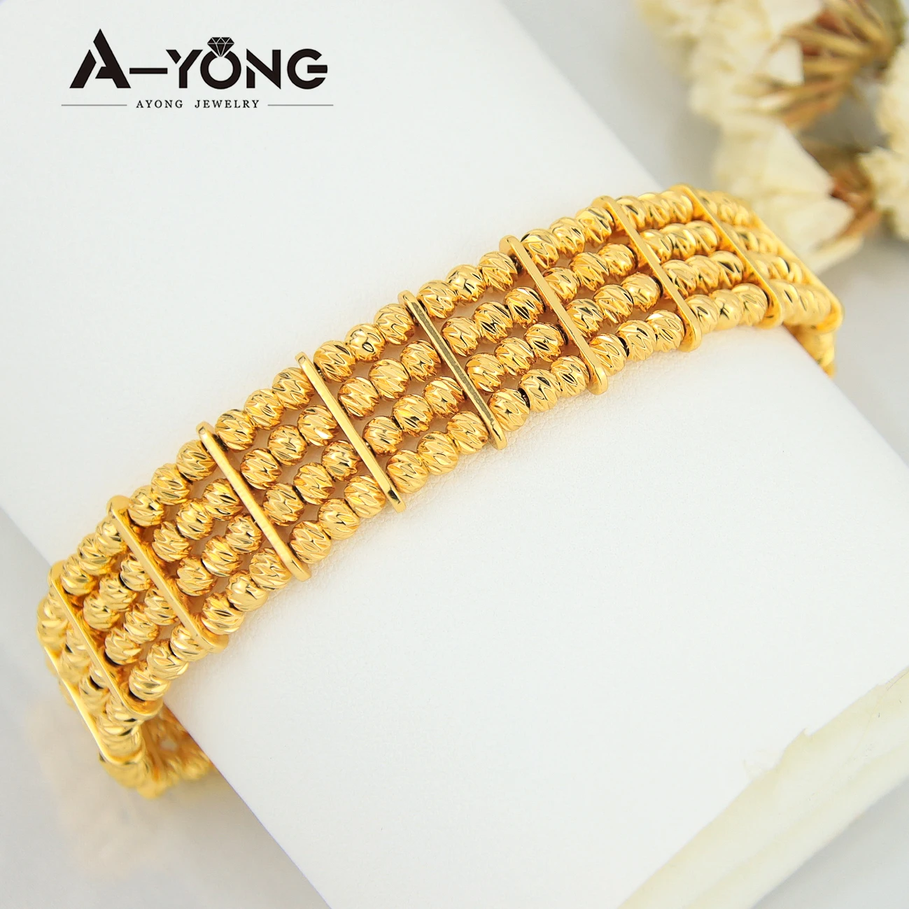أساور متعددة الطبقات من الخرز الذهبي المطلي بالذهب عيار 21 ، أساور أنيقة ، مجوهرات فاخرة لحفلات الزفاف للنساء